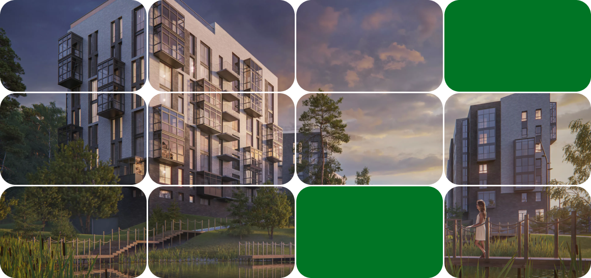 В 500 метрах от домов расположен первозданный лес, который наполнит вашу квартиру ароматной свежестью лесной рощи, а дивные пейзажи и пение птиц будут дарить вам теплые эмоции каждый день.